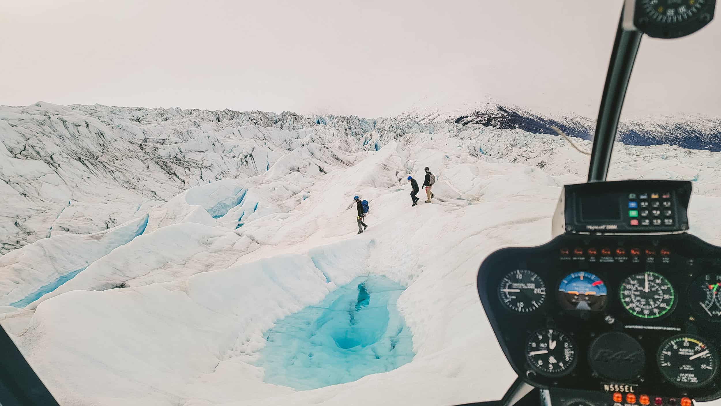 Fly over dramatic glacial terrain & embark on a trekking adventure!