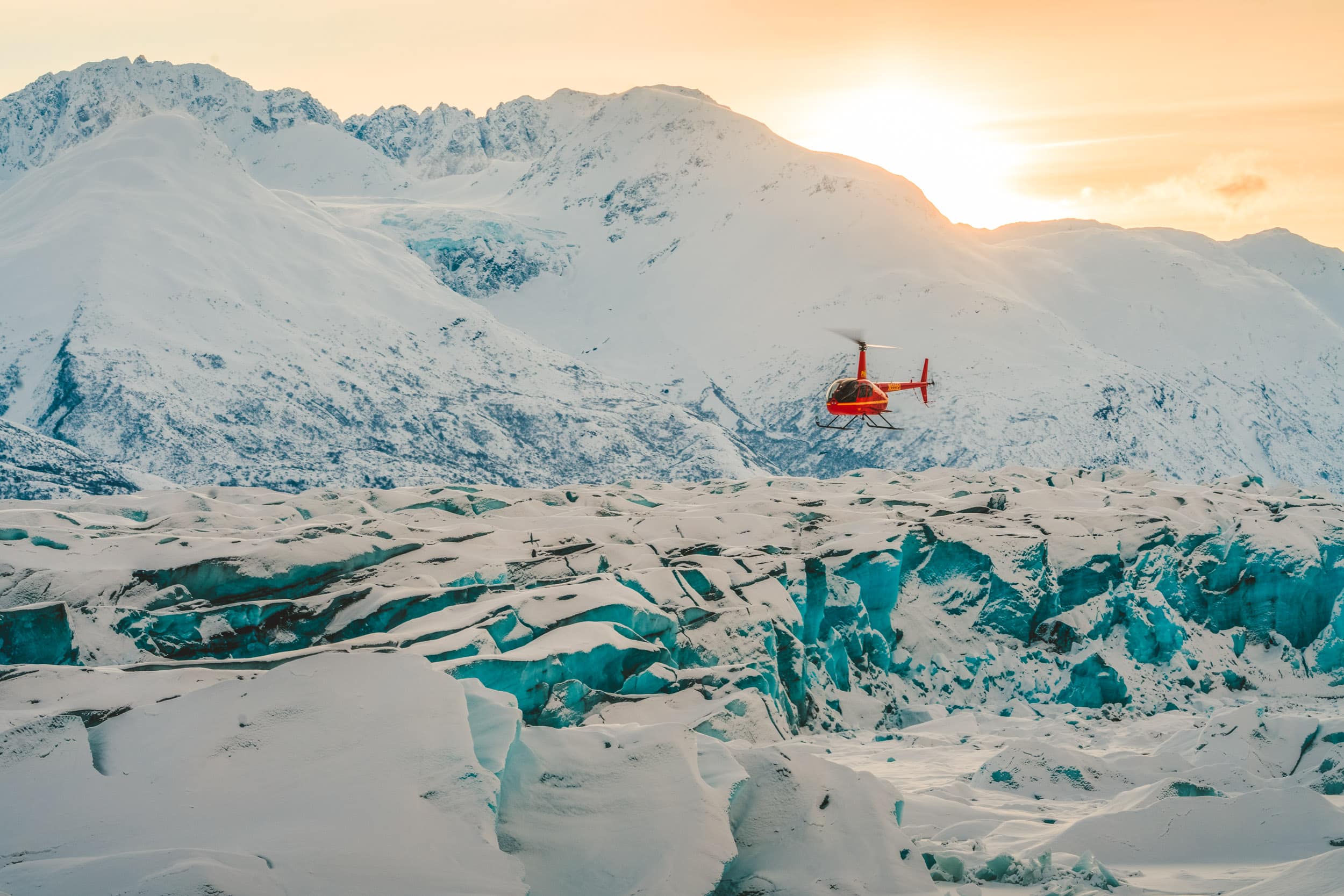 Witness the grandeur of Alaska while soaring above icy glaciers, mountain ridgelines, dramatic waterfalls, and steep gorges on this unforgettable adventure.
